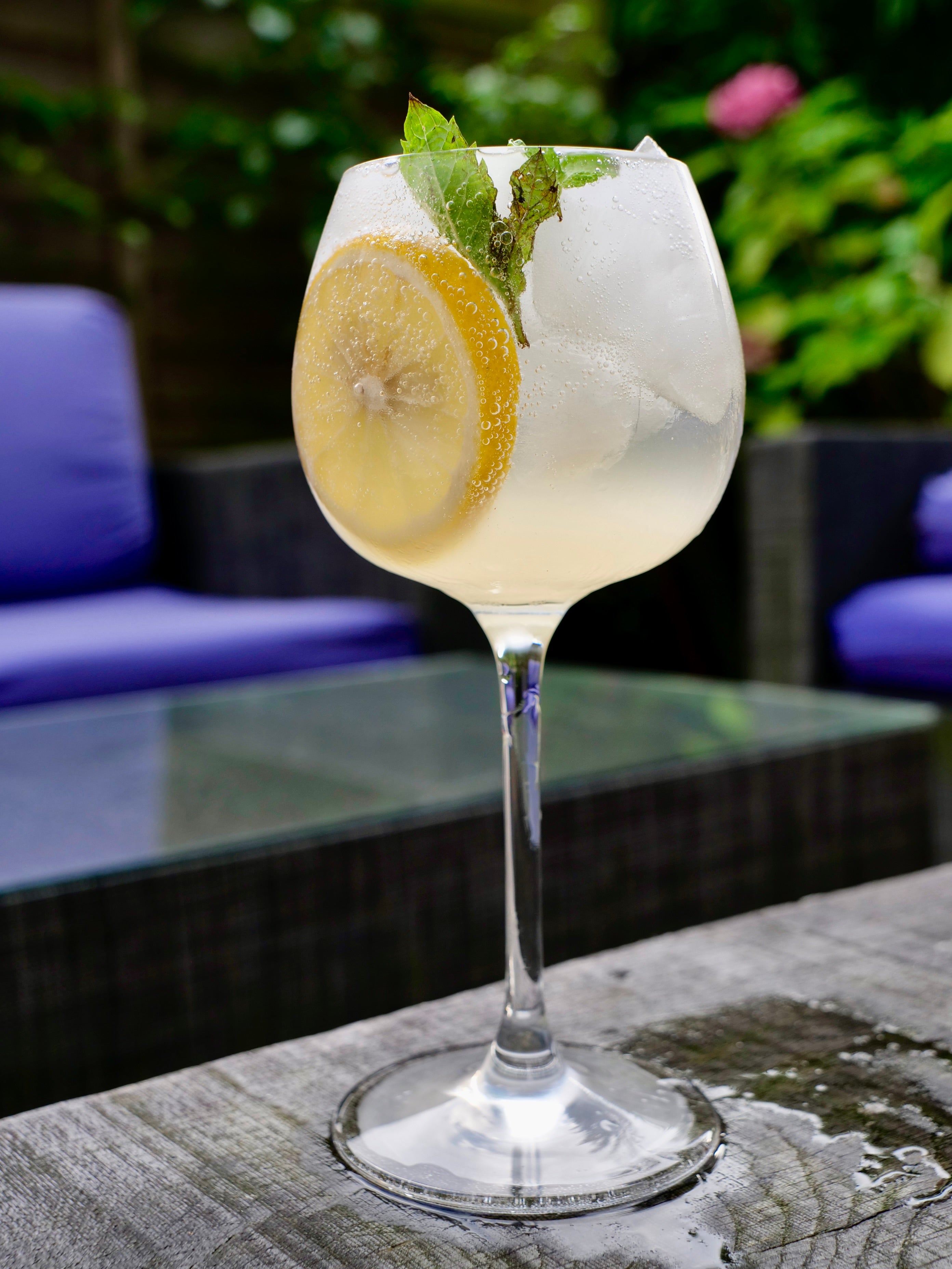 Finish with: A slice of lemon and sprig of mint